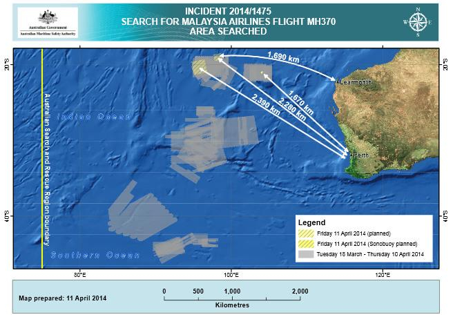 中新网4月11日电 澳大利亚联合协调中心官网11日发布马航MH370搜寻工作最新安排。协调中心通报称,11日将有15架飞机和13艘船只在南印度洋海域搜索失联马航客机,搜索区域中心位于珀斯西北约2312公里。
