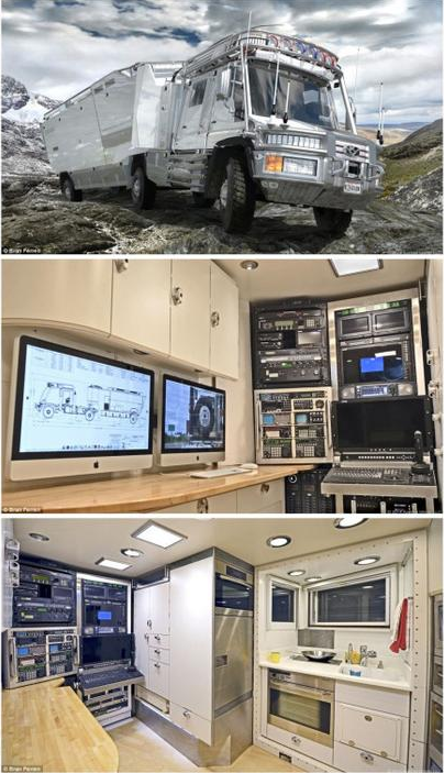 时刻新闻 —分享— 美国加州一名61岁男子为带4岁女儿环游世界,花了几百万美元建了一辆超级巨型旅游车,该车有强化轮胎,可攀45度斜坡,有办公室,浴室,卧室,车身还有22个镜头,可监测车外状况,另备有无人机,可应对紧急情况。 来源:东莞时间网 编辑:李莎宁