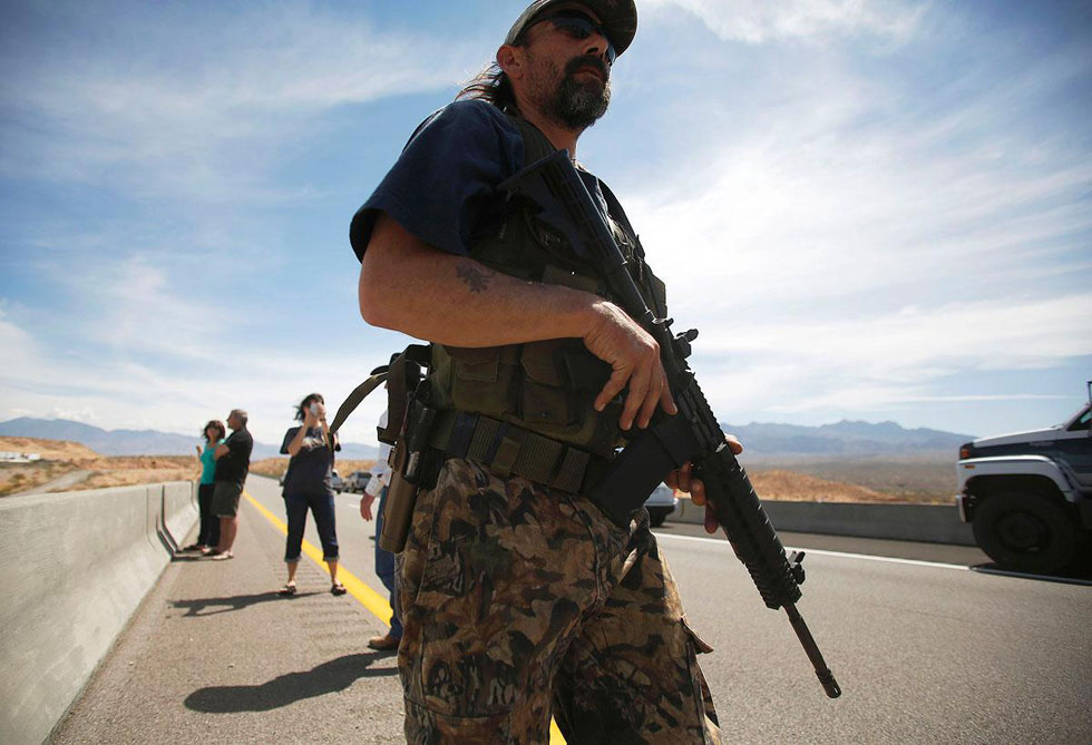 加利福尼亚州、爱德荷州等地前来支持牧场主邦迪的民兵在获取胜利后,身着迷彩、手持步枪,高呼“打开大门”、“解放人民”。一位民兵表示:“我们若不在此时展现力量,就无处可以捍卫自己的权力了。”他手持AR-15步枪,称“若战争打起,我随时准备开火。”