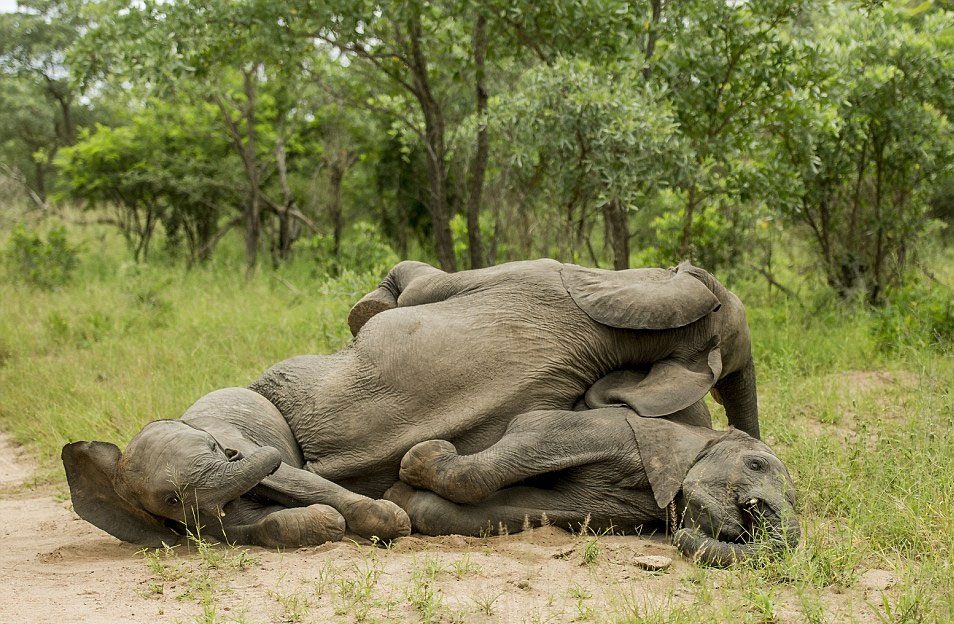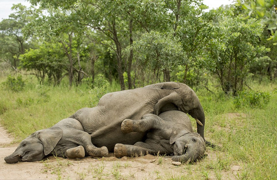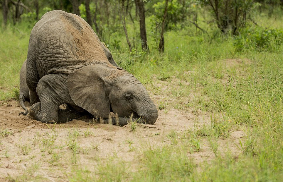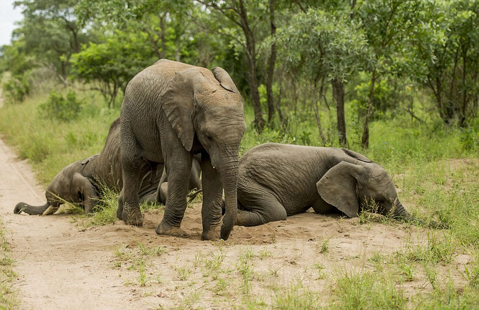 克鲁格国家公园野外向导罗斯·库普尔(Ross Couper)看到这些小象跌跌撞撞、直至倒地的醉态。他说:“我们怀着敬畏之心看着它们,因为这些小象显然已经醉了。”