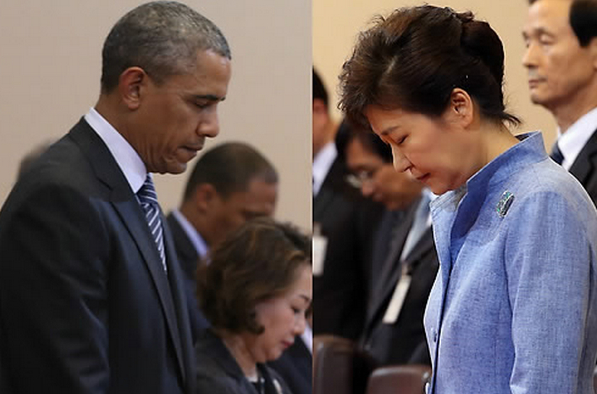 奥巴马和朴槿惠为沉船事件默哀(网页截图)