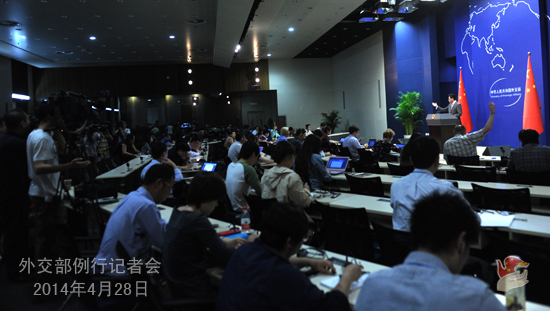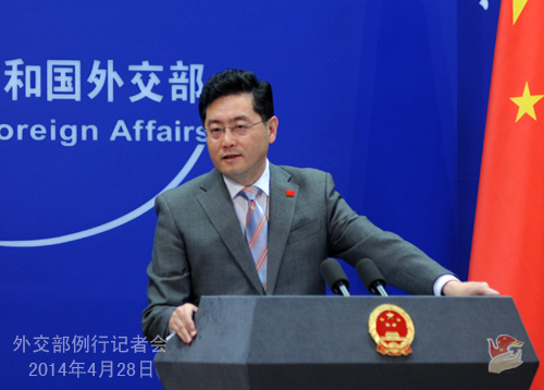 2014年4月28日,外交部发言人秦刚主持例行记者会。
