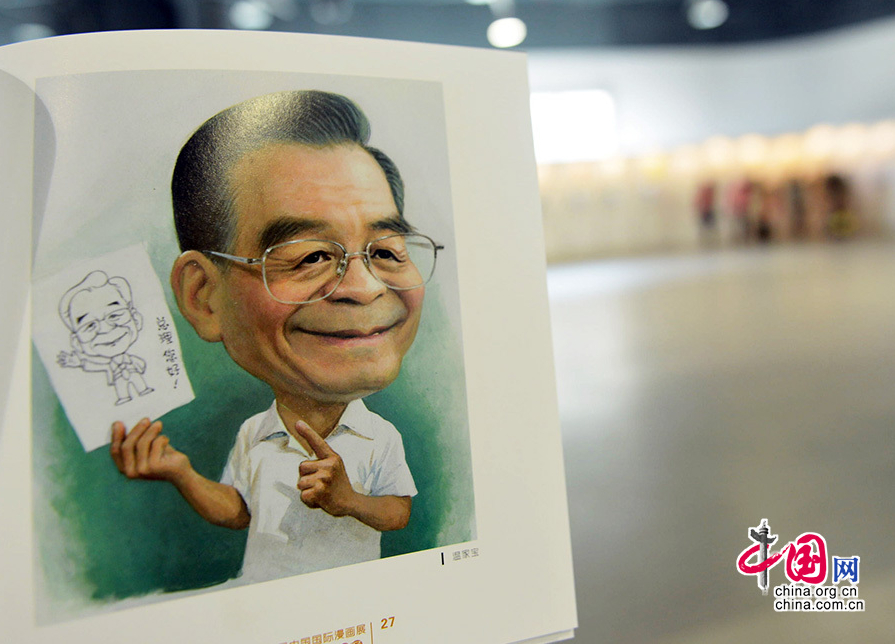 2014年04月29日,浙江省杭州市,拍摄到的温家宝的漫画像。