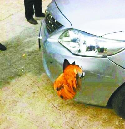 记者昨天赶到汉阳动物园路,向周边商铺店主和清洁工们打听。一位黄姓环卫工看过图片后说,好像在几天前有一辆轿车前保险杠被撞坏了,“但我没有留意是不是有一只鸡扎进车里。”