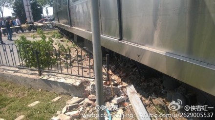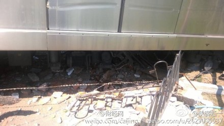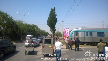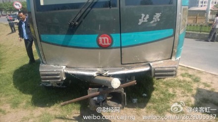 | 北京四号线一地铁测试车辆冲进绿地 |