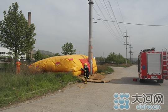 ( 消防队员立即铺设救生气垫和草垫/杨光武摄)