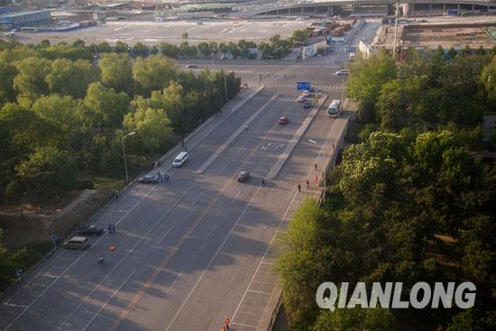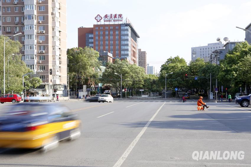 北京安贞医院西门附近的道路十分宽敞可供直升飞机起降。千龙网实习记者 鄂晓颖摄