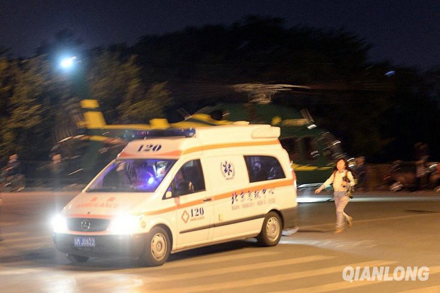 活体心脏从救援直升机转移至120急救车,汽车火速开进安贞医院。(京华时报供图)