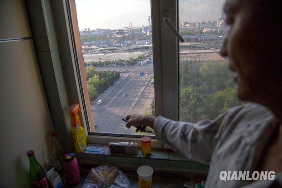 一位热心市民在家里向记者介绍当日直升机降落时的情况。千龙网实习记者 李贺摄