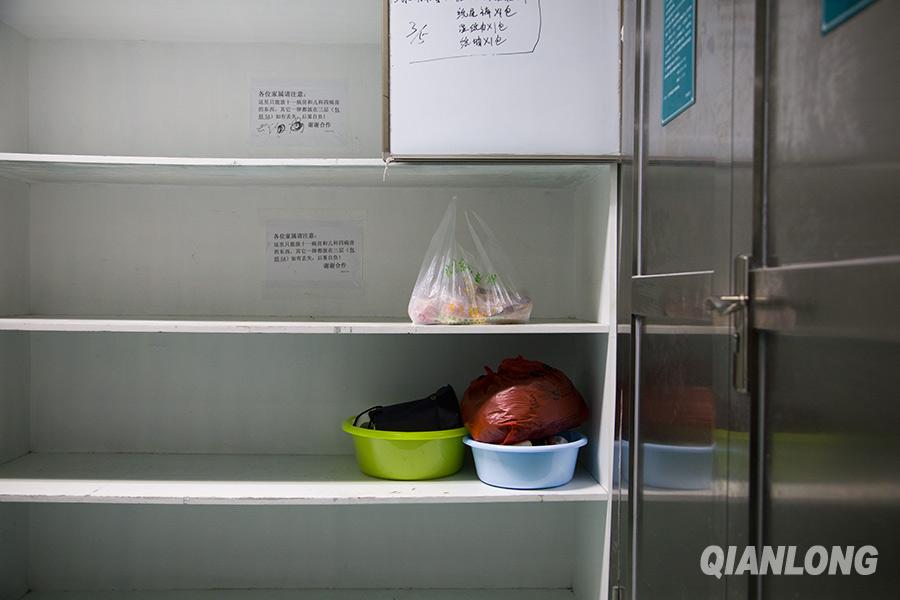 护士会在ICU门外的白板上写患儿需要的物品,家长看到后就放到架子上,由护士再拿进去。千龙网实习记者 李贺摄