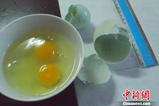 图为鸡蛋中还有一个完整的鸡蛋。 游超 摄