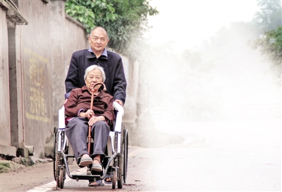 昨晨,小雨,邹开新推着冉文先往江津贾嗣镇民政办走去。