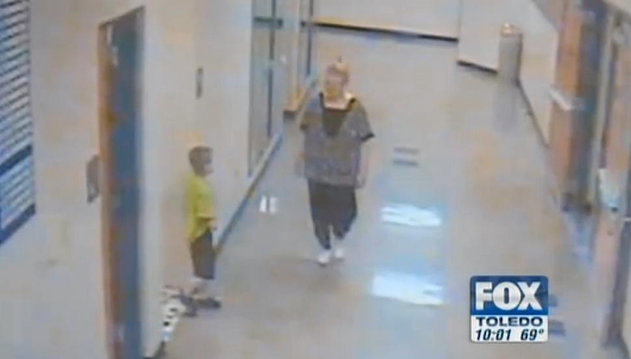 美国俄亥俄州一名老师近日被监控录像拍到欺凌一名6岁儿童画面(视频截图)