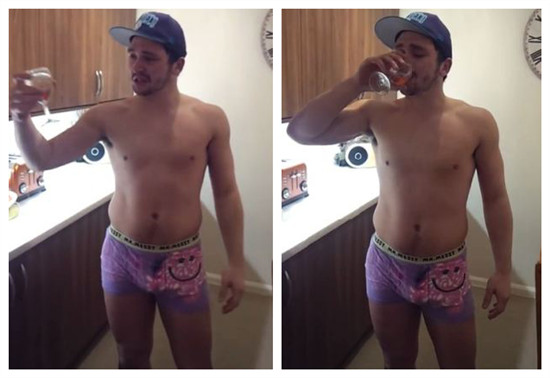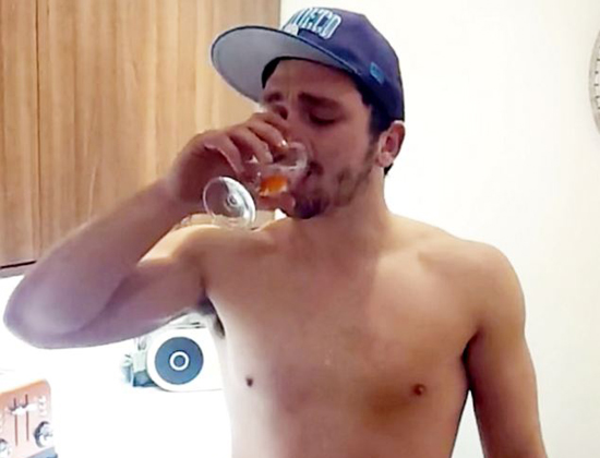 据报道,这名男子名叫本·艾尔菲克(Ben Elphick),23岁,来自英国普利茅斯。视频中,身穿短裤的他先是调了一杯鸡尾酒,随后将透明塑料袋中的一只活金鱼倒入调好的酒中,接着豪饮下肚。然后,他转身拿起身旁桌子上的鸭舌帽,帽子下方另有一个装有活金鱼的水杯,艾尔菲克再次做出惊人举动,将整杯水连同金鱼一起吞下。