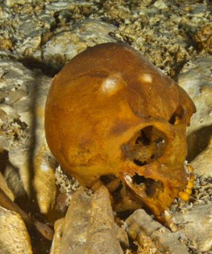 2014年5月15日消息,墨西哥地质部门公布的照片显示,2013年6月15日在墨西哥尤卡坦半岛海域,潜水员在峡谷底部发现一具年轻女孩的尸骨,名为“Naia”,女孩大概有15-16岁,生活在距今12000-13000年前的冰河时代。