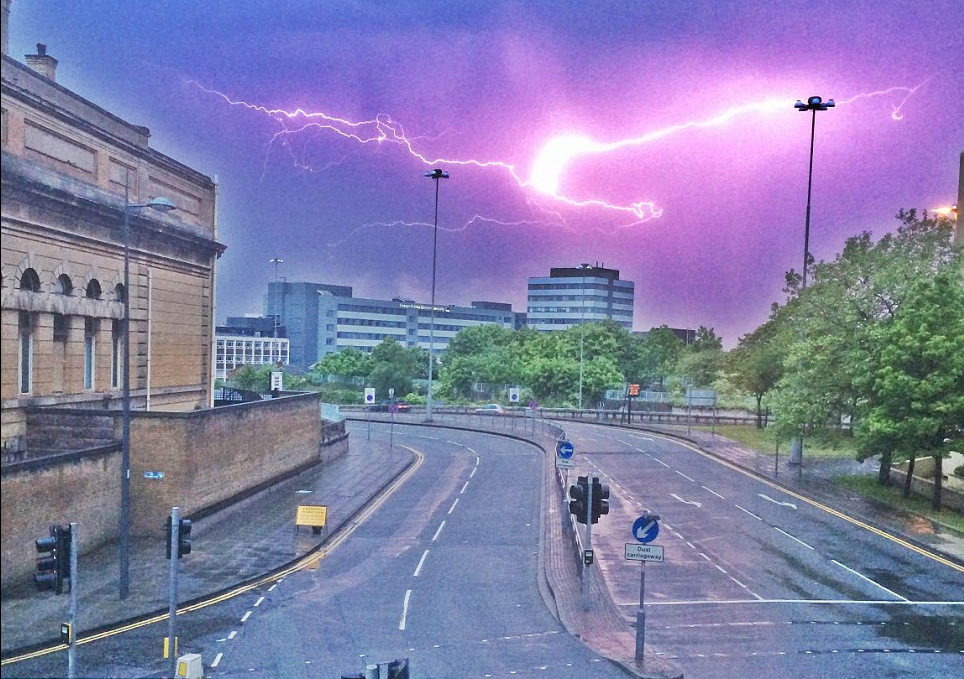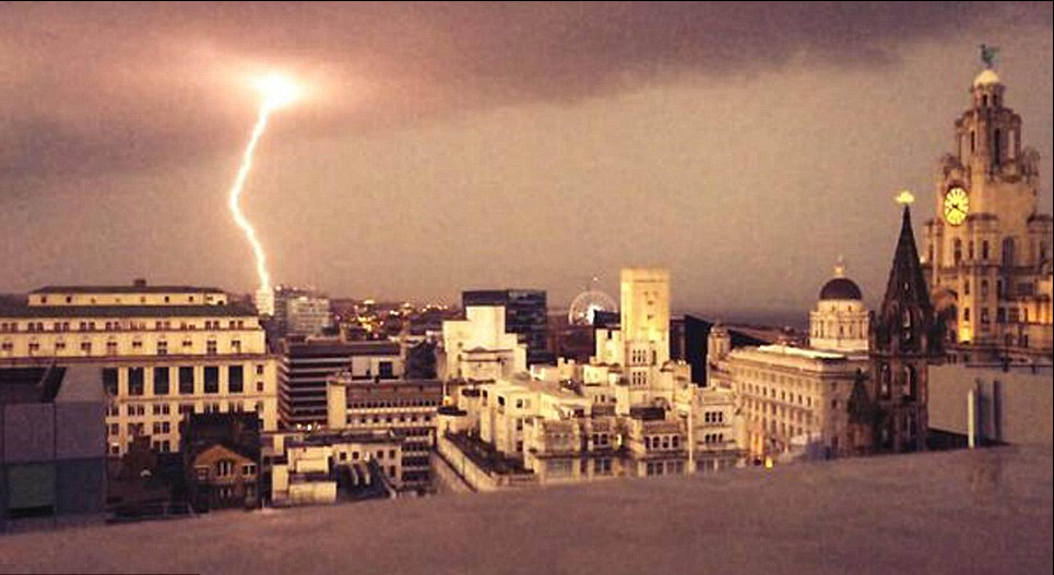 利物浦市上空雷电交加,而此前数小时,英国气温刚刚达到今年以来最高温度