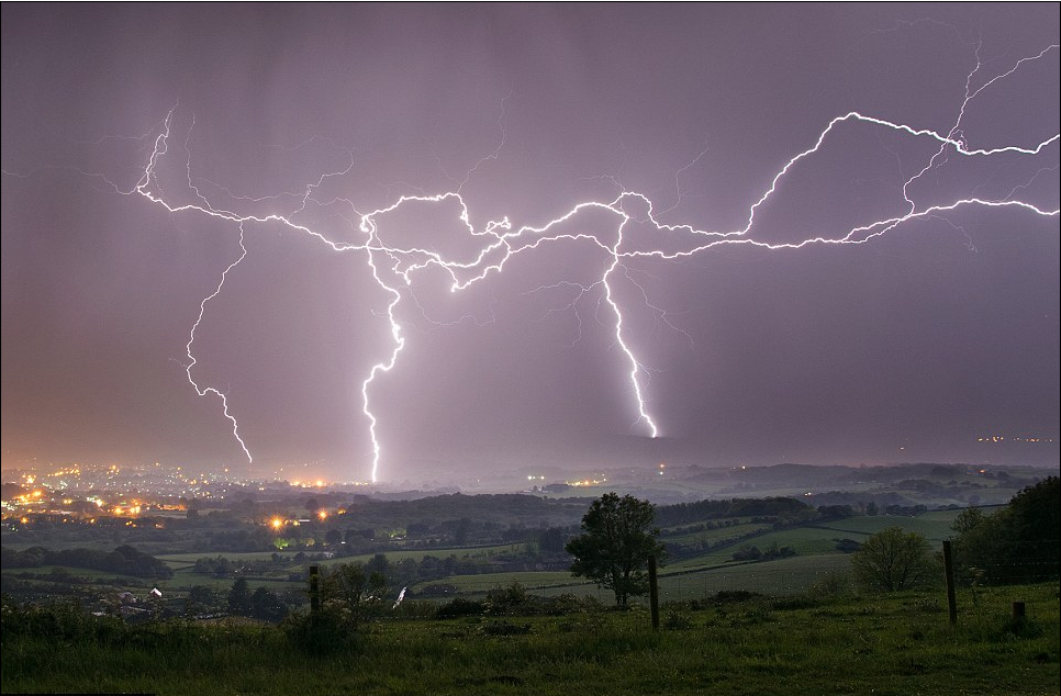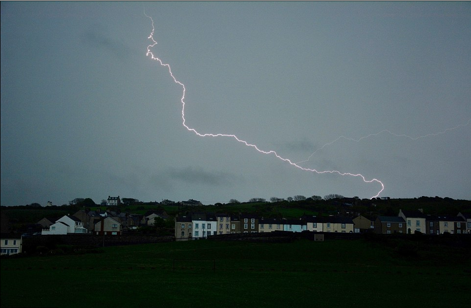 坎布里亚郡西部,黄昏期间遭闪电袭击