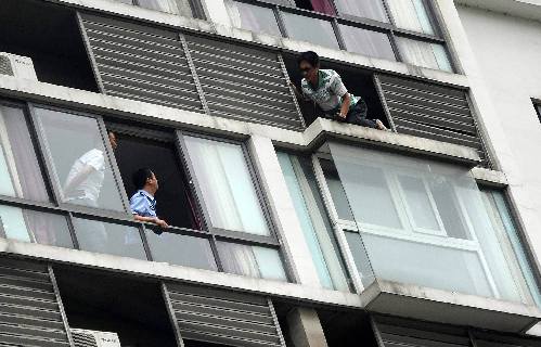 周鹏看到郑军脚已经稳稳地踏在了7楼站台上,身子往楼里缩,“我猜他可能有点怕了,就赶紧放手,边退边说我们不碰你。”在民警的帮助下,郑军放弃轻生念头,回到屋子里。