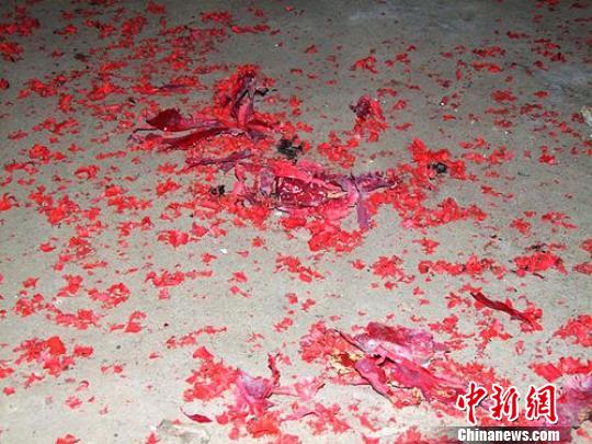 5月20日晚上,沛县的大街小巷几乎随处可见这样新鲜鞭炮纸屑。 张建设 摄