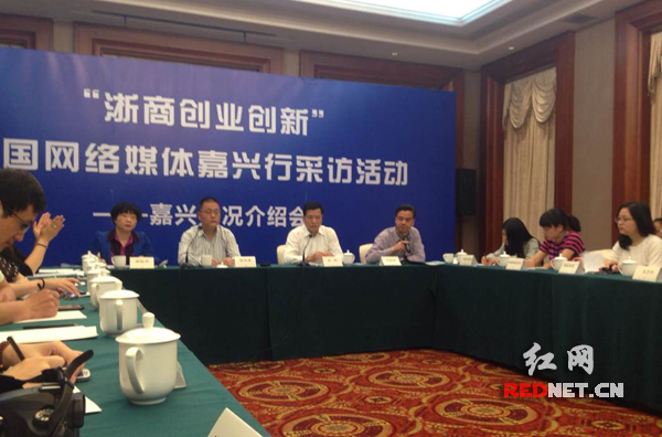 (“浙商创业创新”全国网络媒体嘉兴行采访活动嘉兴情况介绍会现场。)