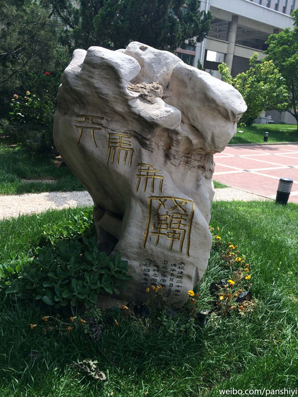 “走进清华,一块石头上刻着四个字,一个字也不认识。忽然感到了差距。”大V潘石屹昨天在自己的微博上贴出了在清华大学内拍的一张照片:一块大石头上刻着四个字。这四个字瞬间也难倒了很多网友和粉丝。