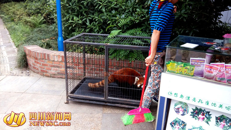 四川新闻网成都5月31日讯(记者 张异同摄影报道)近日,热心市民杨女士向四川新闻网反映:成都欢乐谷“动物天堂”竟有小熊猫被绳子套住脖子,供游人拍照。杨女士觉得,商家这样的行为不妥当,有虐待国家保护动物的嫌疑。昨日,四川新闻网记者对此进行了采访。