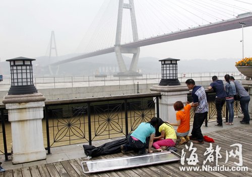昨日上午10点,海都记者赶到马尾水产品市场附近闽江水域时,岸边已经站满了围观群众。此时,男死者已经被打捞上岸,他的妻子和家属瘫坐在地上伤心哭泣。码头边的江面上,一艘渔船正在来回行驶寻找女死者的尸体。