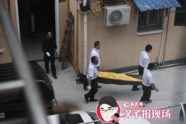 新民网记者赶到现场时,警方已经在周围拉起了警戒线,正在进行现场调查,一具遗体被殡仪馆的工作人员抬出了小区。