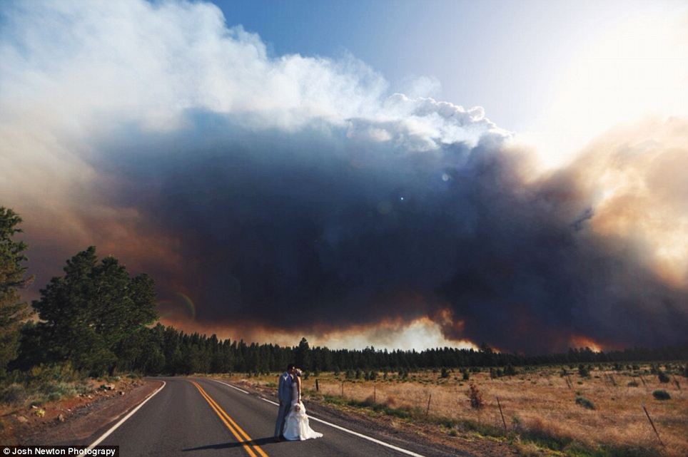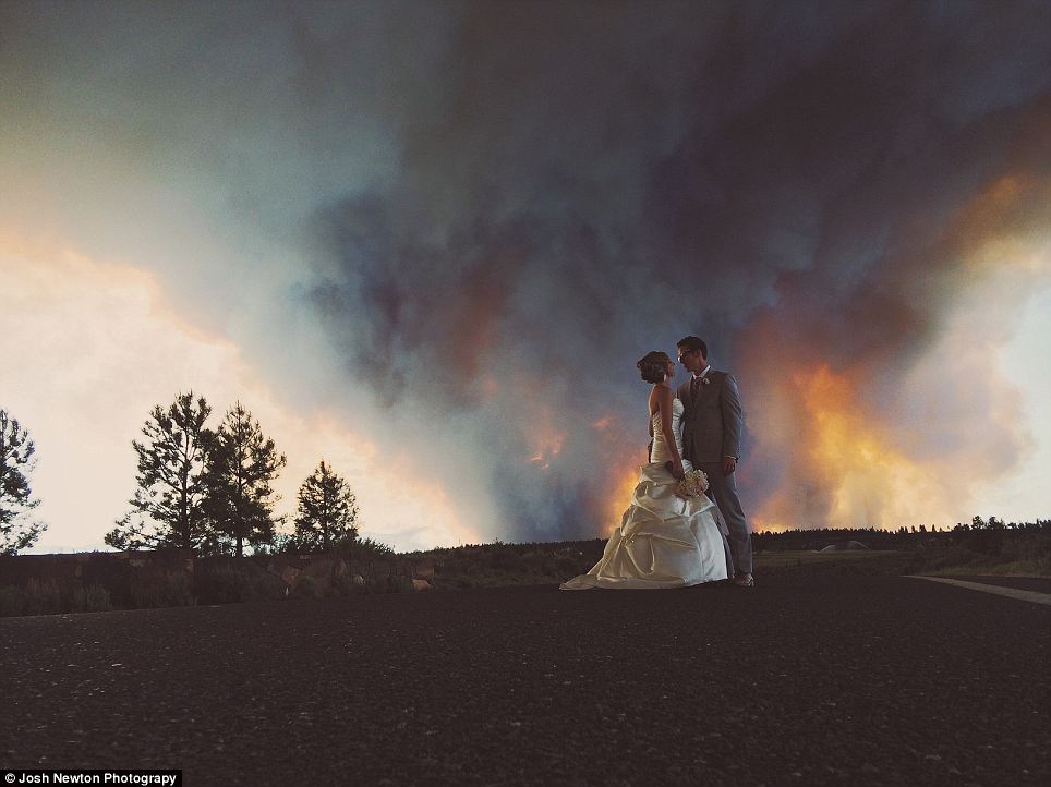 美国俄勒冈州一对新婚夫妇在举行婚礼时突遇山火。当其他宾客纷纷逃到安全地带时,这对儿新人反其道而行之,拉着摄影师拍下一组以山火为背景的婚纱照。摄影师称,从来没有拍过如此“火热”的婚纱照。(文字来源:人民网)