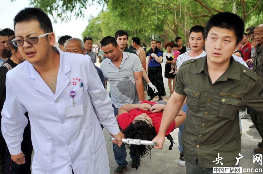 搜救人员悲痛地抬着西尔艾力·艾比走向救护车(央广网发 达林塔 摄)