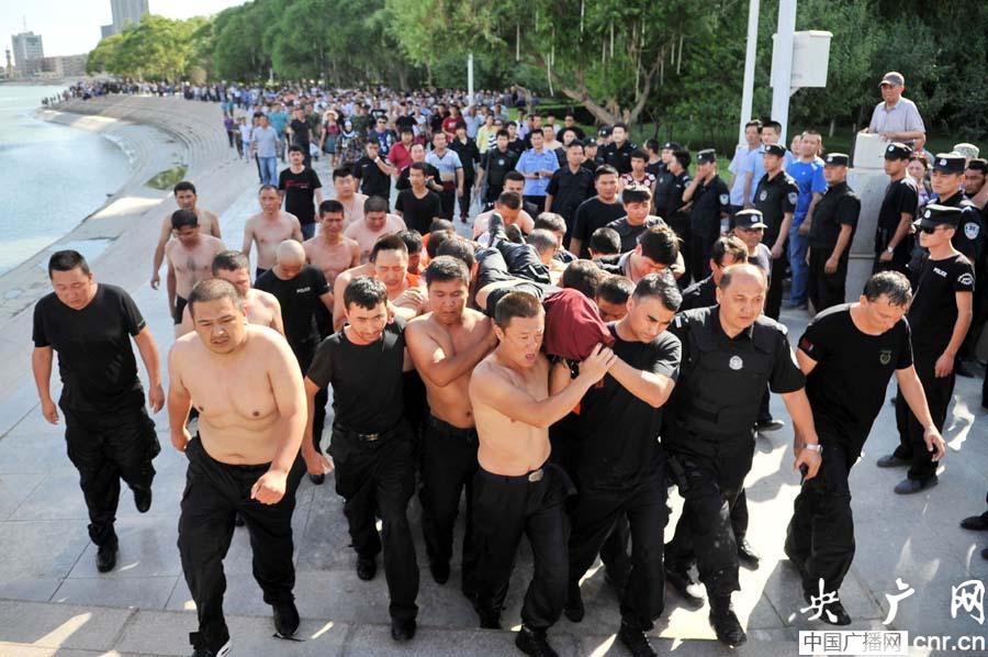 上千群众在岸边目送英勇牺牲的西尔艾力·艾比离去(央广网发 达林塔 摄)