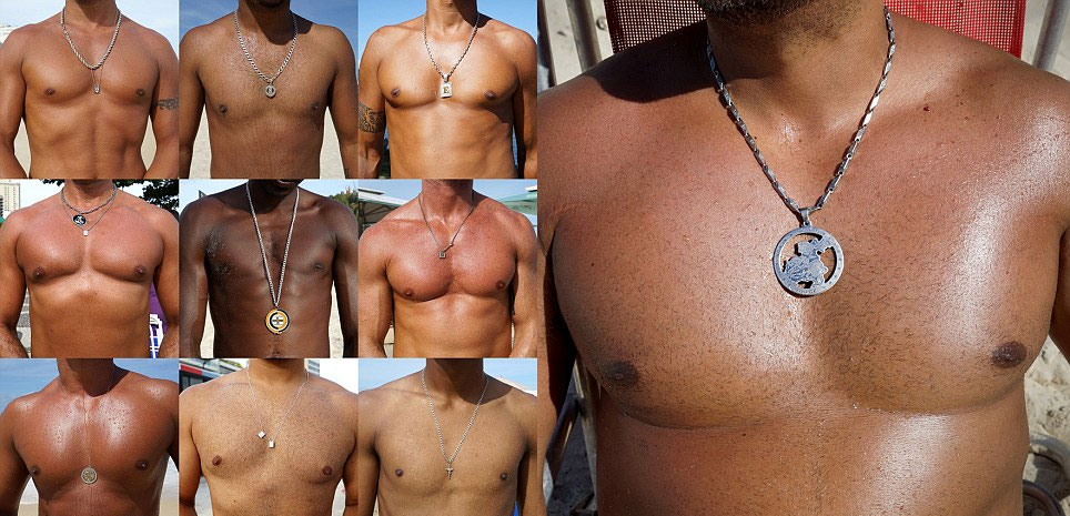 在海滩的巴西男子,胸前都带着银制项链。(网页截图)