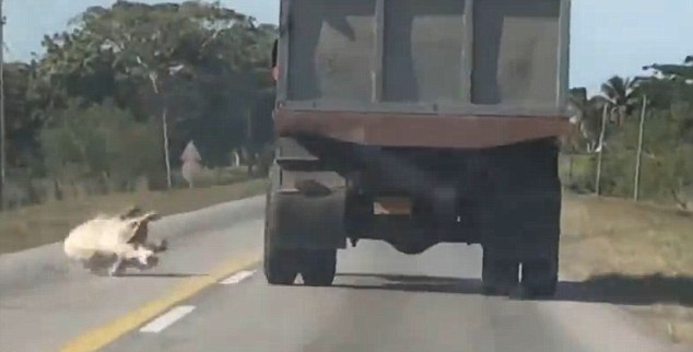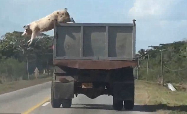 小猪跳下卡车的视频有幸被一位汽车司机拍摄到了。从视频中可以看到,小猪对于去屠宰场非常的不情愿。它首先把头伸了出来,然后将整个身子探了出来,最后成功从这辆高速行驶的卡车上逃了出来。从10英尺(大约3米)高且高速行驶的卡车上跳下来,小猪明显有点眩晕,但是它还是踉踉跄跄地走到了路边。在这段视频的最后,小猪朝家的方向走去,越走越远。