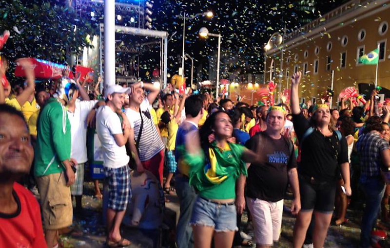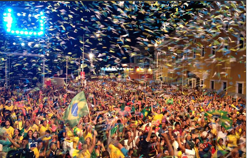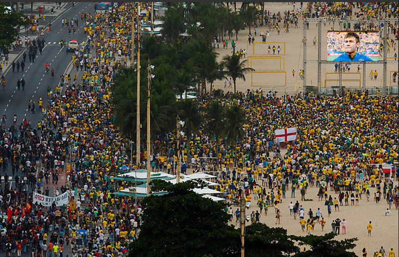 数万名球迷来到里约热内卢市科帕卡巴纳沙滩,共享世界杯揭幕战之夜(网页截图)