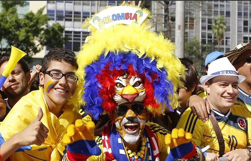 哥伦比亚球迷装扮老虎造型。(网页截图)