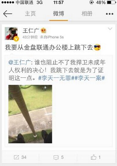 跳楼男子微博截图