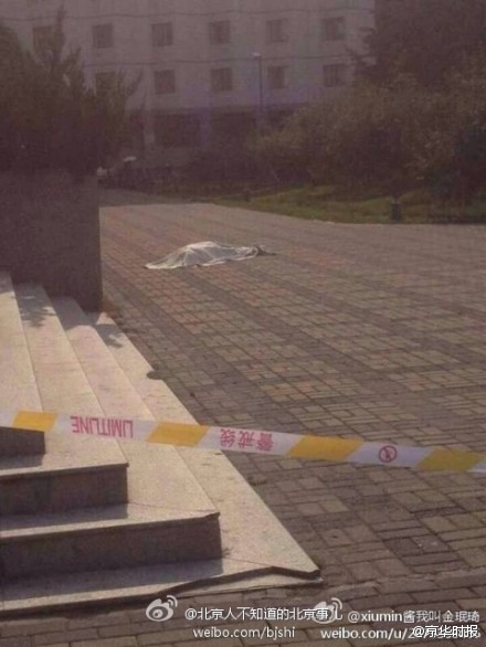 京华时报【人民大学一人坠楼身亡】今天下午4点左右,人大品园5楼北侧,1人从楼上坠落。校内多名学生证实此事,下午5点多,死者身上盖着白布,已无生命体征。有传言称死者可能是从10层楼跳下。据了解,该楼为研究生宿舍楼,多为研一研二学生,楼内有部分画室,楼门入口有刷卡门禁系统。(京华记者 施志军)