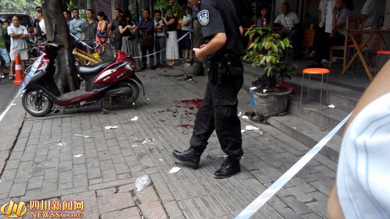 四川新闻网成都6月14日讯(记者 张肇婷 杜玉全)今(14)日中午12时30分许,成都市上同仁路一饭店门口发生砍人事件。事发现场,留有大量血迹,附近目击者称,有人受伤。事发后,警方迅速赶至现场,进行处置,目前案件正在调查中。图片来源:四川新闻网