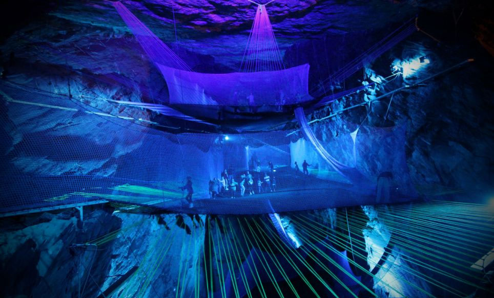 位于英国北威尔士采石小镇布莱奈·费斯蒂尼奥格的Llechwedd岩洞正在被改造成世界上最大的地下蹦床,并将于7月3日开放。(网页截图)