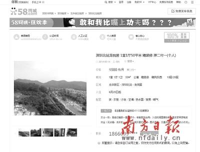 根据报料人指引,记者在58同城深圳频道上搜索“龙悦居”和“转租”两个关键词,找到了转租者王小姐所发布的信息。