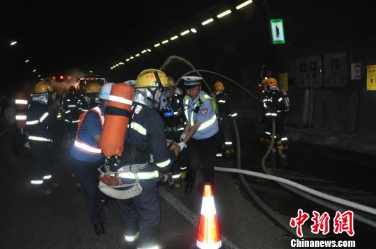 中新网忻州6月18日电 (王惠琳)晋济高速公路山西晋城段岩后隧道“3·1”交通事故发生后,山西高速交警高度重视交通安全。18日,山西高速交警二支队、消防官兵、路政人员等200余人在山西忻阜高速凤凰岭隧道现场演练隧道灭火。