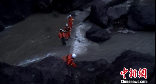 两男子受困福州闽侯十八重溪景区 , 消防员摸黑进山搜救3小时。 朱晓航 摄