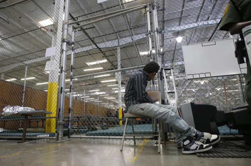 当地时间2014年6月18日,被美国海关截获的儿童移民被安置在诺加利斯收容中心和德州布朗斯维尔收容中心,衣食住行由美国安排。近几个月来,大量来自中美洲国家的无人陪伴儿童涌入美国边境,引发人道主义危机等一系列问题,美国两大移民收容中心布朗斯维尔和诺加利斯收容中心自去年10月1日以来,已经接待超过4.7万名非法移民儿童。