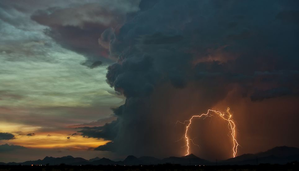 亚利桑那州在季风季节里会有大量暴风雨。拍摄暴风雨的风险很大,美国平均每年有51人死于雷电袭击。