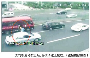 原标题:为让迟到孩子上车 母驾豪车逼停校巴
