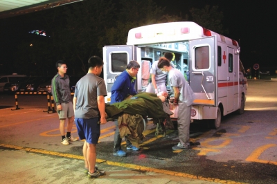 22日凌晨,一名受伤士兵被送往韩国江陵一家医院接受救治。新华社/路透
