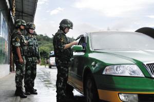 6月16日,西双版纳兴海查缉点,张海露带着女兵们对过往车辆进行检查 ■ 马闪山