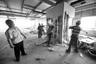 记者昨天进入拆除现场看到,东部的违建内部已经空无一人,但西部仍有人办公。预计该违建全部腾退和拆除完毕,需要一个月的时间,耗资将达到上百万,将暂由政府部门垫付。