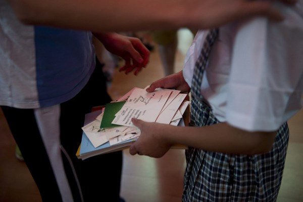 国际高中班的几十位学生,还有跟杨六斤一起上国学的十几位国学班同学,都给杨六斤制作了卡片,国际实验班的陈浴洲在卡片上写道“六斤,你还是我的弟弟,是我唯一一个弟弟,哥哥也不想说太多,只想开开心心送你,不想流着眼泪送你,以后要照顾好自己,别让别人骗了,哥哥以前跟你讲的话要记住,愿我们有缘再见!赠我的弟弟六斤”。