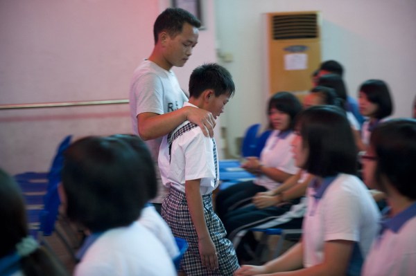 23日上午11时许班主任黄萃老师领着杨六斤来到礼堂,杨六斤一路走一路哭,快到二楼礼堂时,看到在门口等候的堂哥等人,他转身就想走,黄萃老师只好把他领到一边,不停地安慰他,“六斤,你是个坚强的孩子对不对?”杨六斤不停地点头,但眼泪却哗啦啦往下掉。